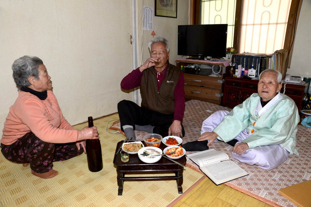 할머니께서 떡국과 정종 술상을 차려 오셨다.