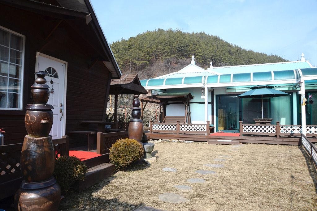 산기슭 높은 위치에 자리한 옛 주택 형식의 가옥