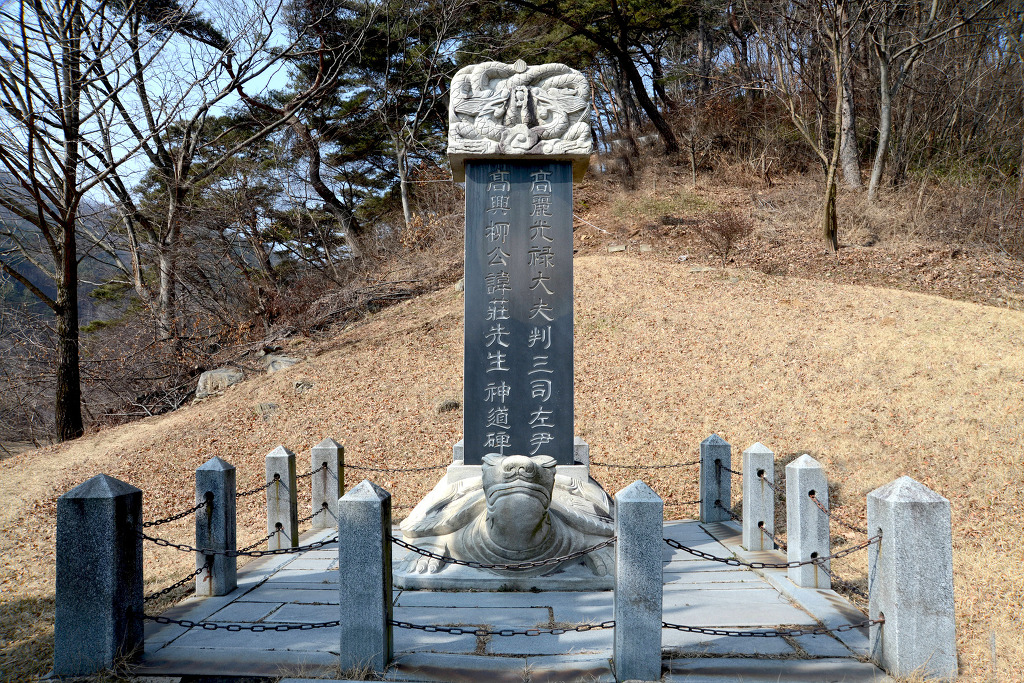 절 입구 좋은 위치에 자리한 고흥 유씨 신도비