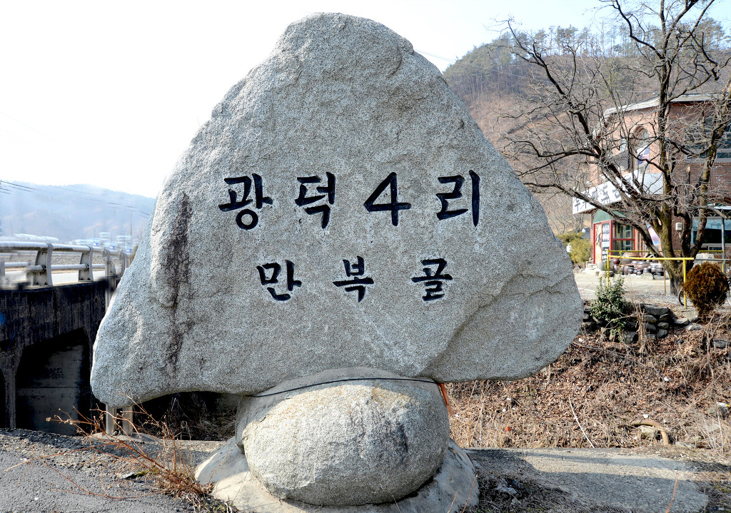 집성촌 광덕리 만복골은 옛 마을 속에 최근에 귀촌한 새로 지은 신가옥들이 많이 보였다.