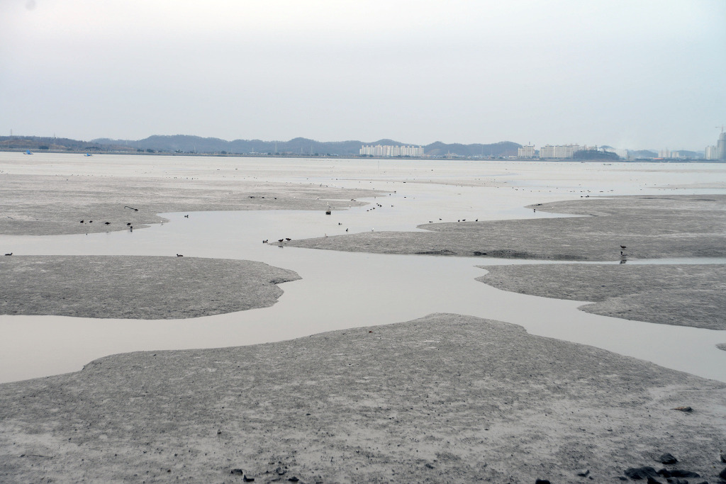 서해와 연결된 철새 놀이터 금강하류 건너편에 군산시가 보인다.