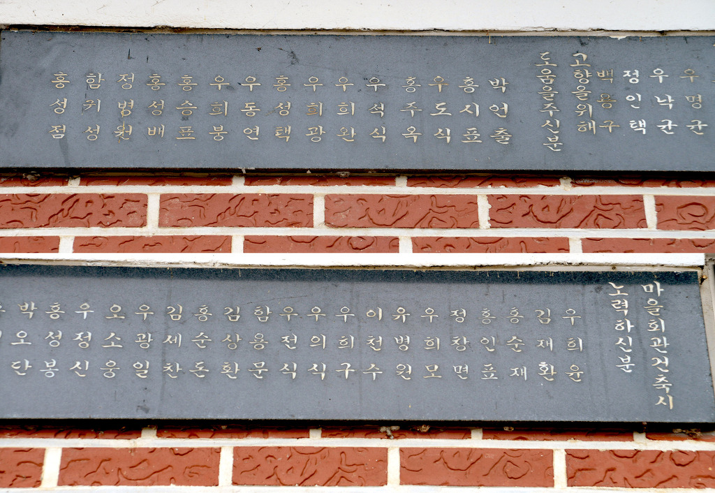 마을회관 건립 찬조자 명단에 단양우씨 다음으로 홍씨 성씨가 많이 보인다.