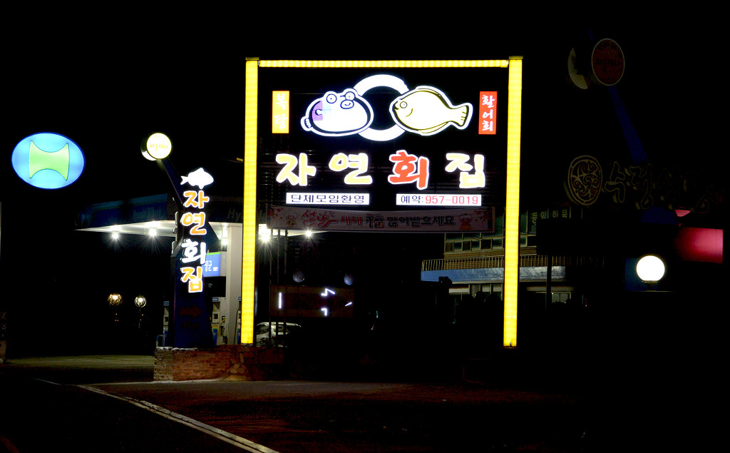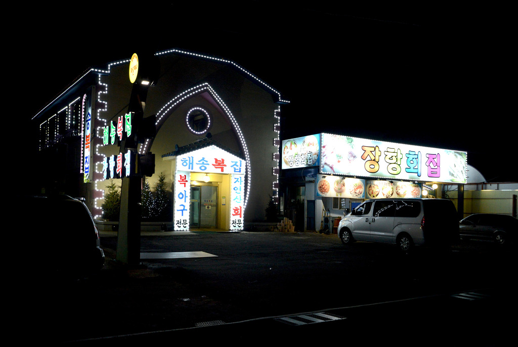 장항읍에서 금강하구둑 관광지로 가는 도로변에 있는 횟집들