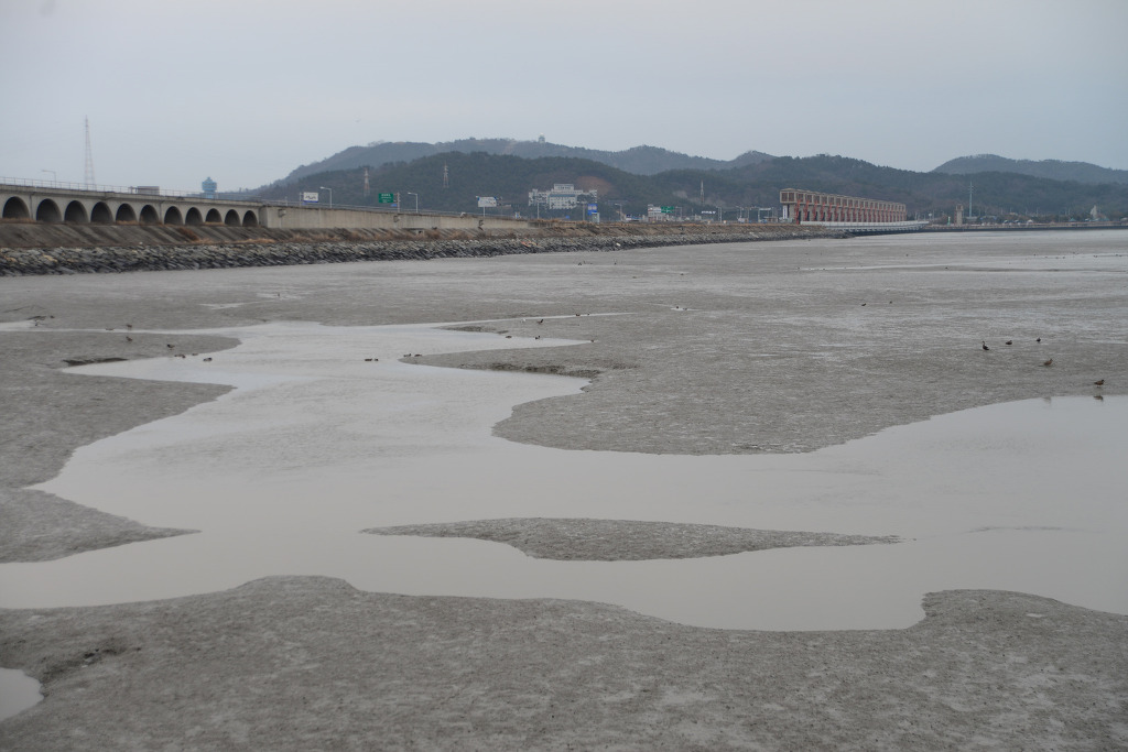 강물을 막아 도로와 저수지로 활용되고 있는 금강 하구둑