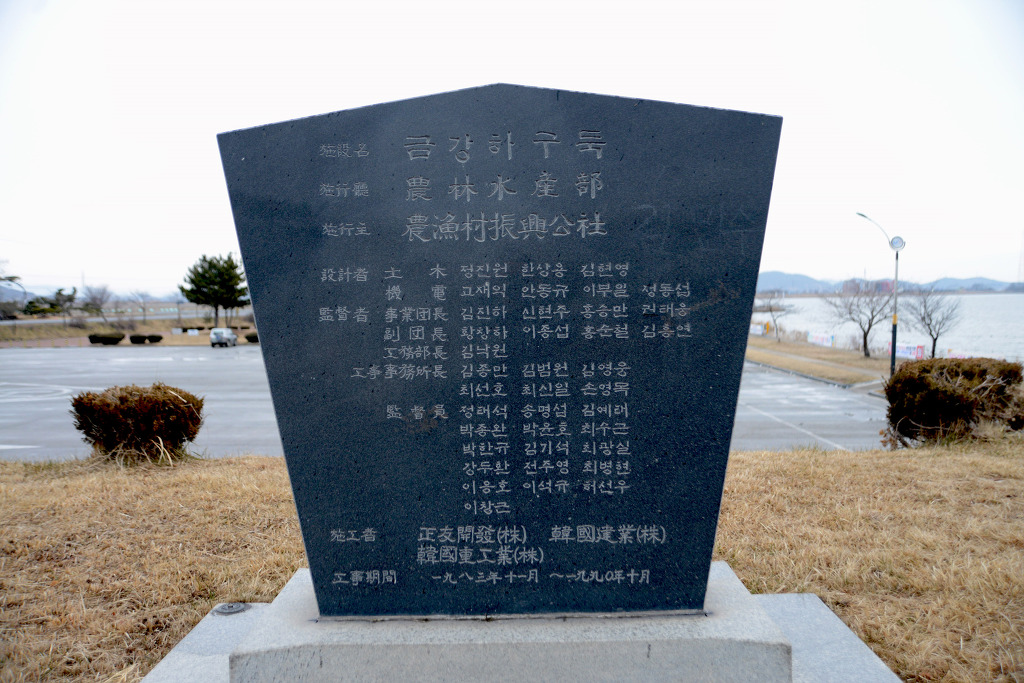 7년간의 공사로 1990년에 준공된 금강하구둑 표지석