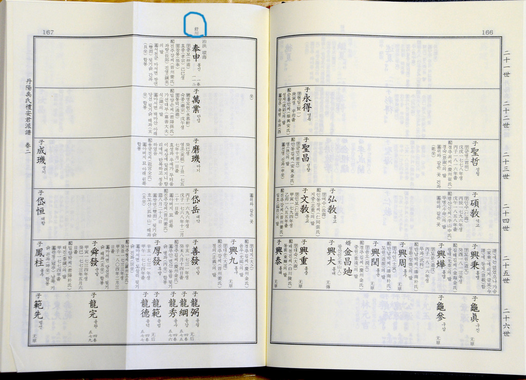 대를 이어 온 족보는 깊숙히 있어 찾지 못하고 근래에 발간된 족보를 보여주신다.