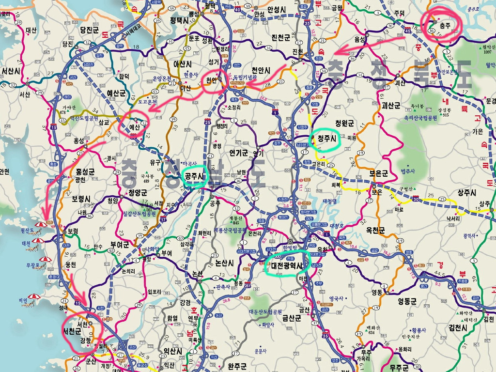충주를 출발하여, 천안 광덕면, 예산 홍성을 거쳐 장항까지 이어진 첫날 탐방