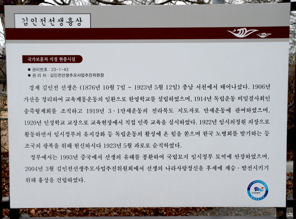 충남 서천 출생 독립운동가 김인전선생 흉상
