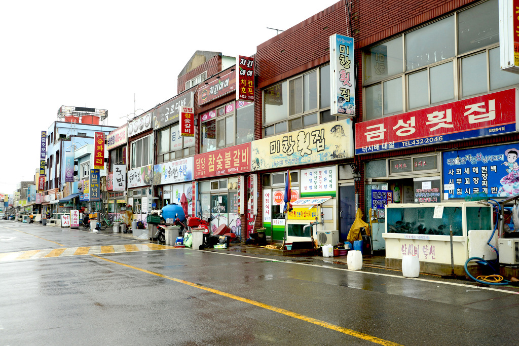 마량항구 중심 주변의 상가들