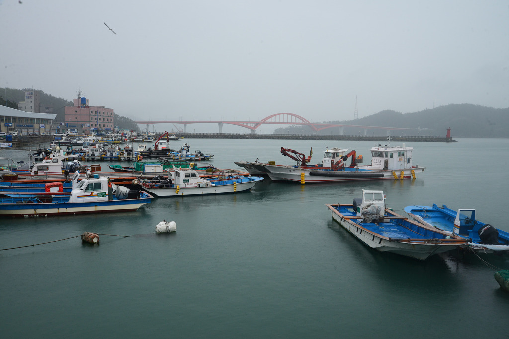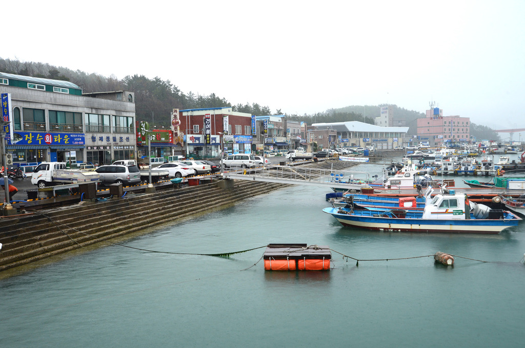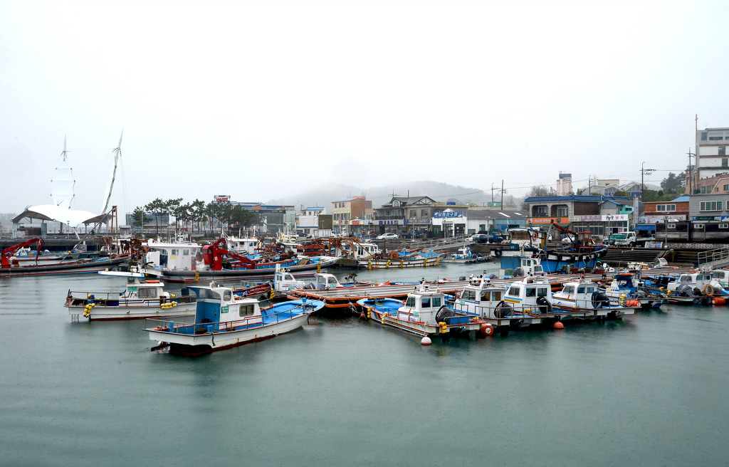비가 내리는 마량항구 전경