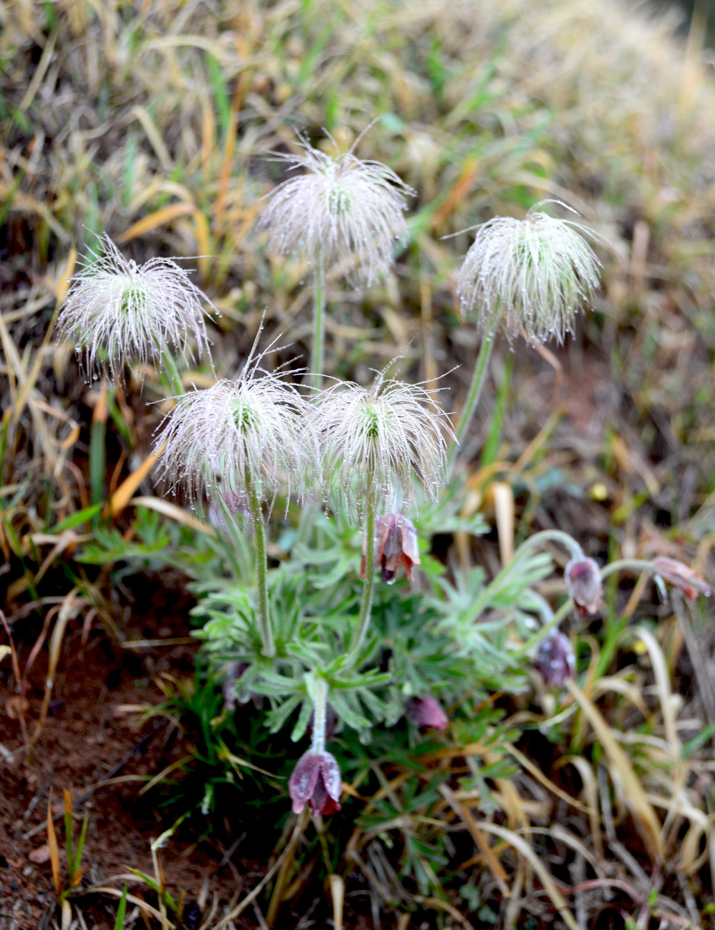 묘소 주변에 비에 젖은 할미꽃이 수줍어 나그네를 맞이하고 있다.