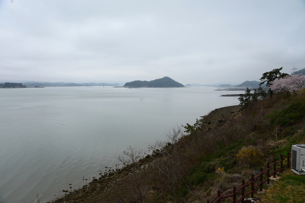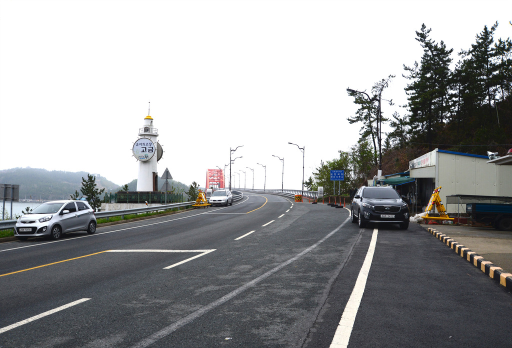 잔뜩 흐린 날씨에 벚꽃이 만개한 도로를 따라 마량항에서 고금도로 이어지는 연육교를 건너