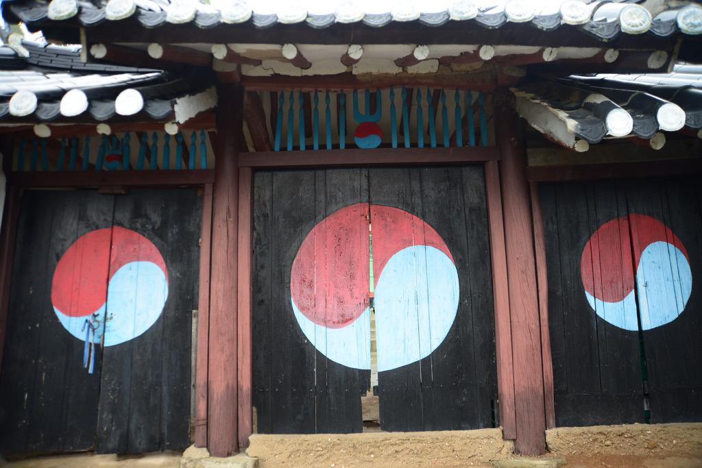 전통 숭조사상이 그려진 태극문양의 일주문
