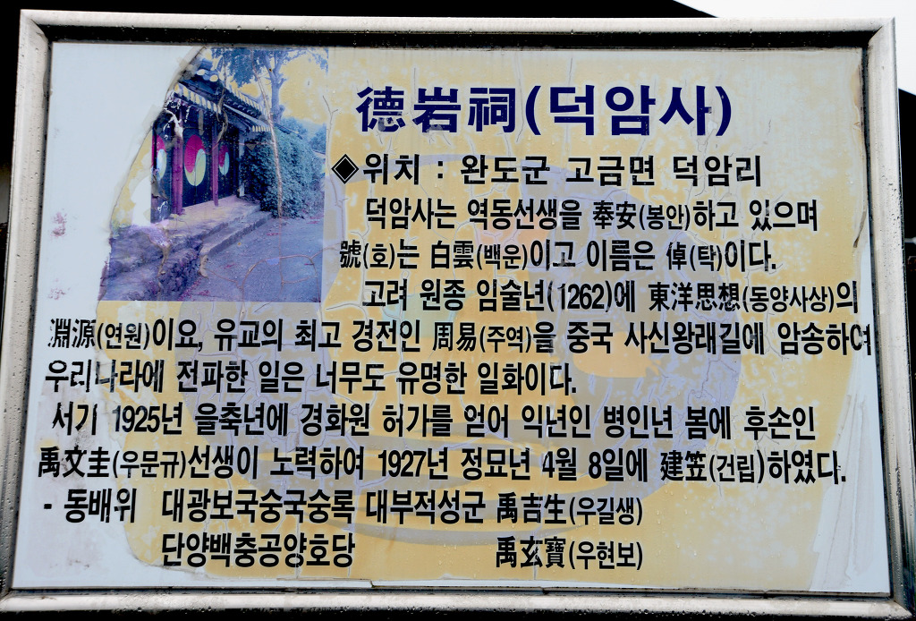 면소재지 마을 언덕에 잘 수리 보존된 덕암사에는 문희공 역동 우선생, 충정공 양호당 우선생,