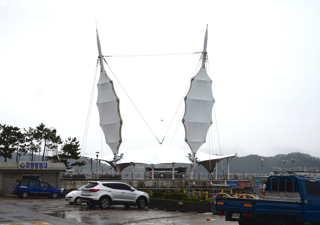 항구에 축제 행사를 위한 상설 무대도 보인다.