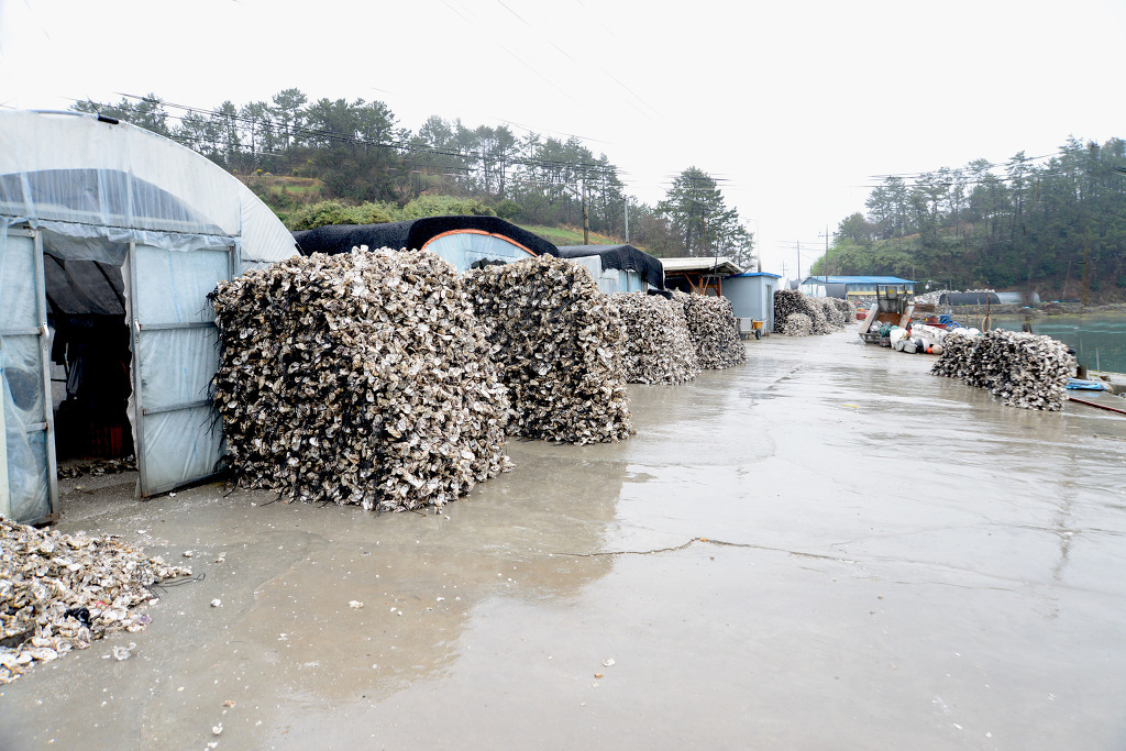 바다와 농토가 함께한 척찬리는 굴양식을 위한 종균 배양 준비 작업이 한창이었다.
