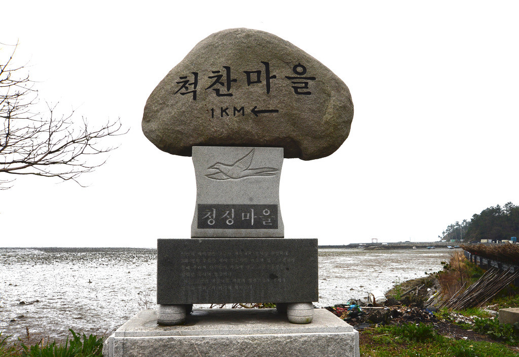 집성촌으로 연결된 마을 입구에 세워진 척찬마을 표지석