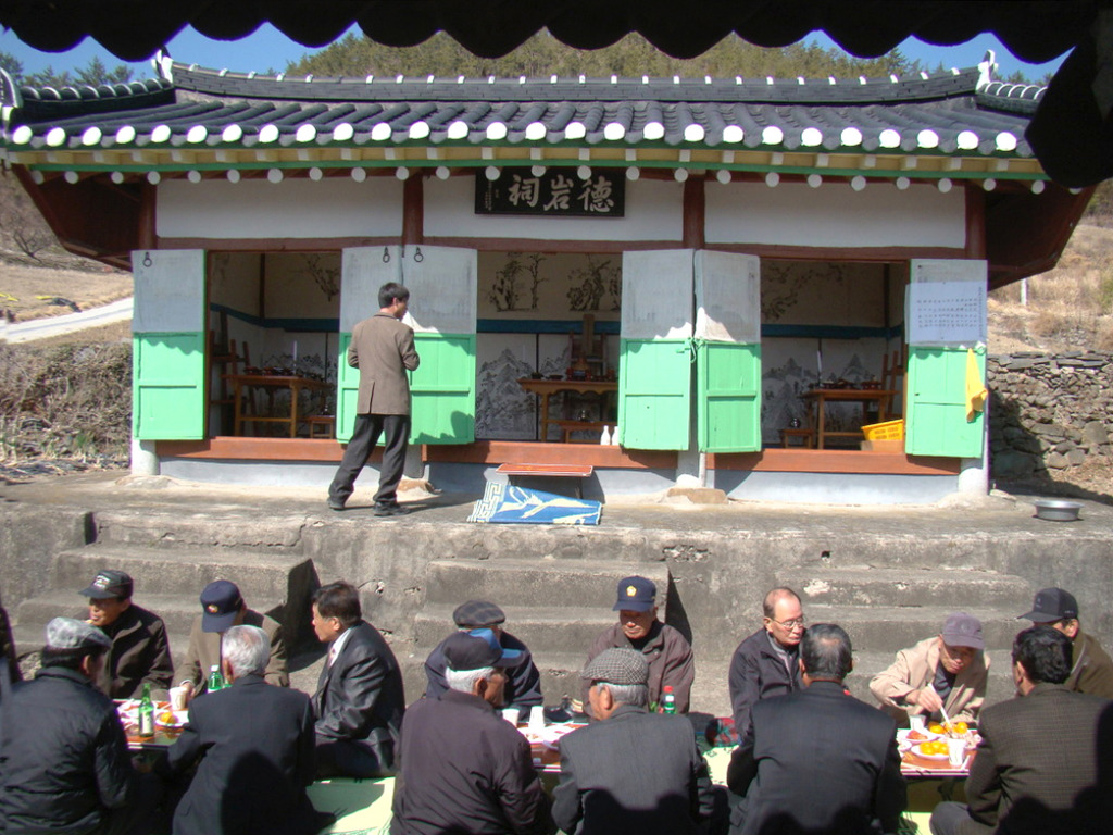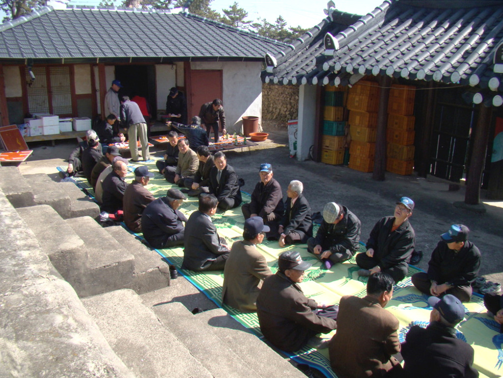 향사 지낸 후 음복을 하고 있는 지역 초빙 어르신들