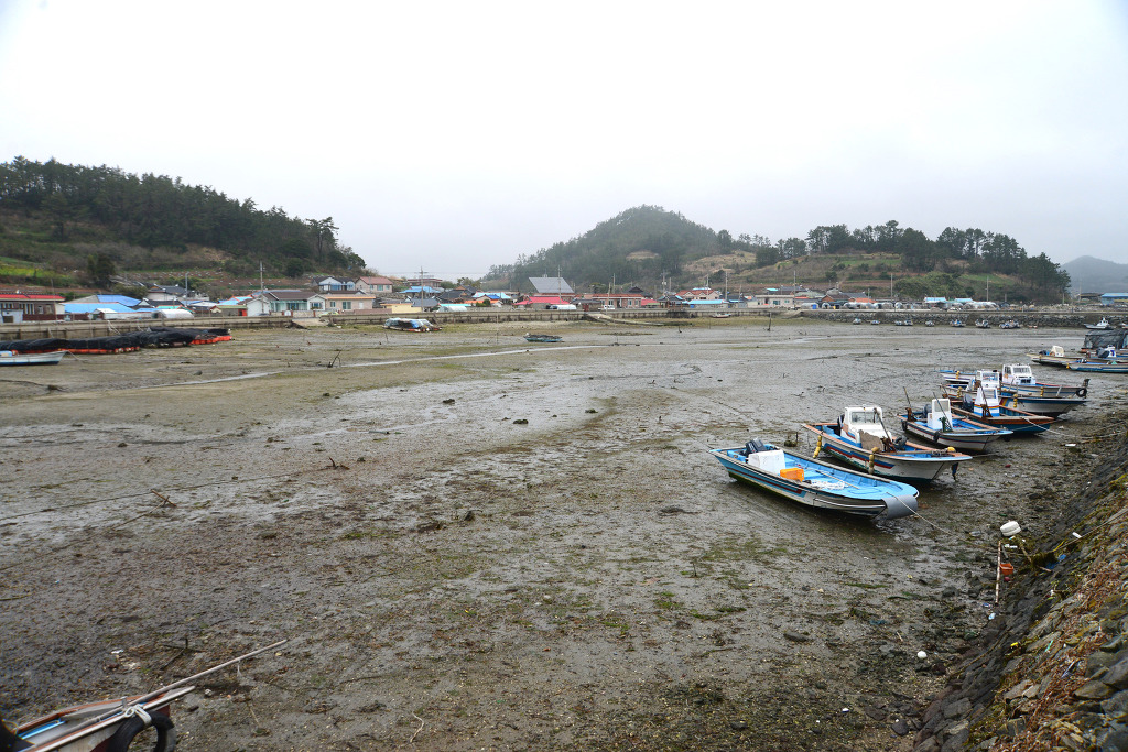 이튿날 아침에는 척찬리 마을 앞바다에 만조가 되어 바닷물이 가득하다.