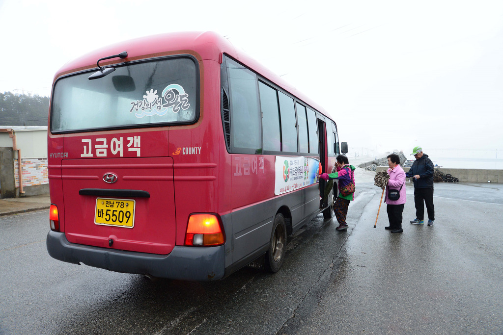 고금도 순환 마을 버스가 도착했다.