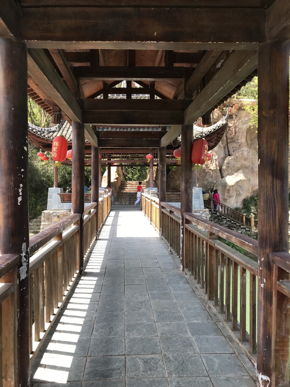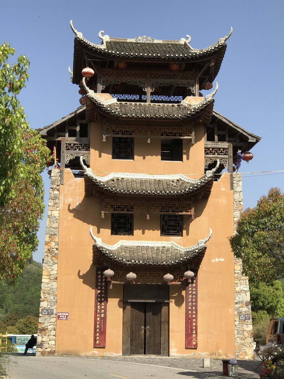 중국 소수 민족 중 하나인 투지아 족이 살았던 지금도 살고 있는 마을을 지나요.