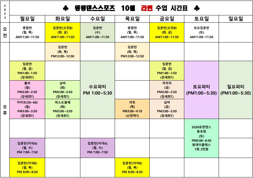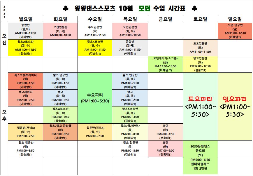 ⭐🌷윙윙댄스스포츠 10월 모던&라틴 단체반 시간표 공지🌷⭐
