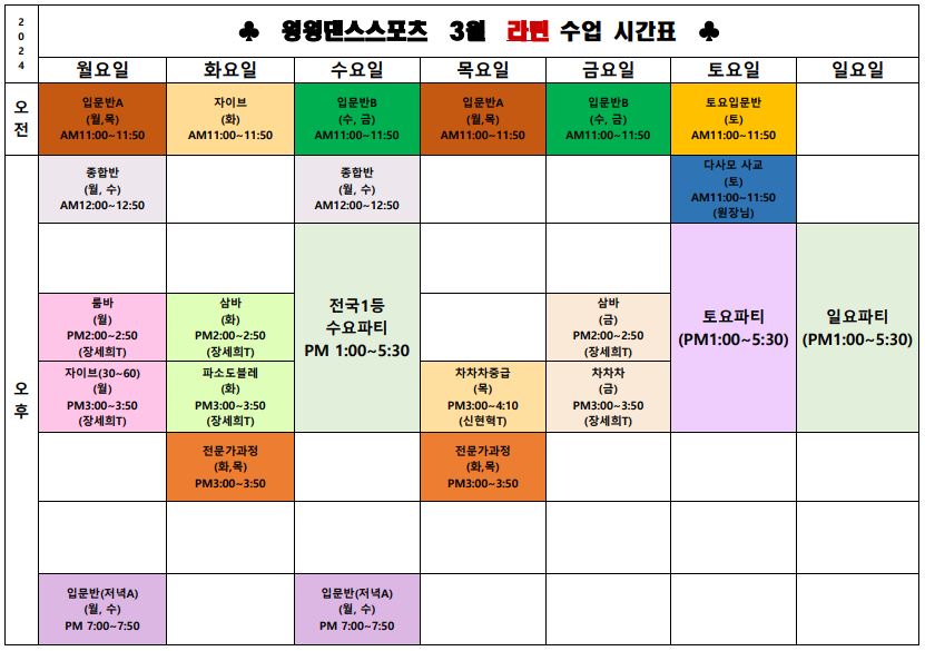 ⭐🌷윙윙댄스스포츠 3월 모던&라틴 단체반 시간표 공지🌷⭐
