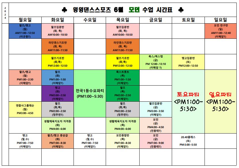 ⭐🌷윙윙댄스스포츠 6월 모던&라틴 단체반 시간표 공지🌷⭐