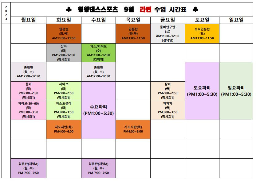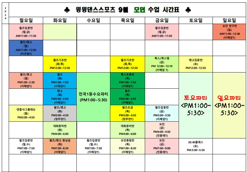 ⭐🌷윙윙댄스스포츠 9월 모던&라틴 단체반 시간표 공지🌷⭐