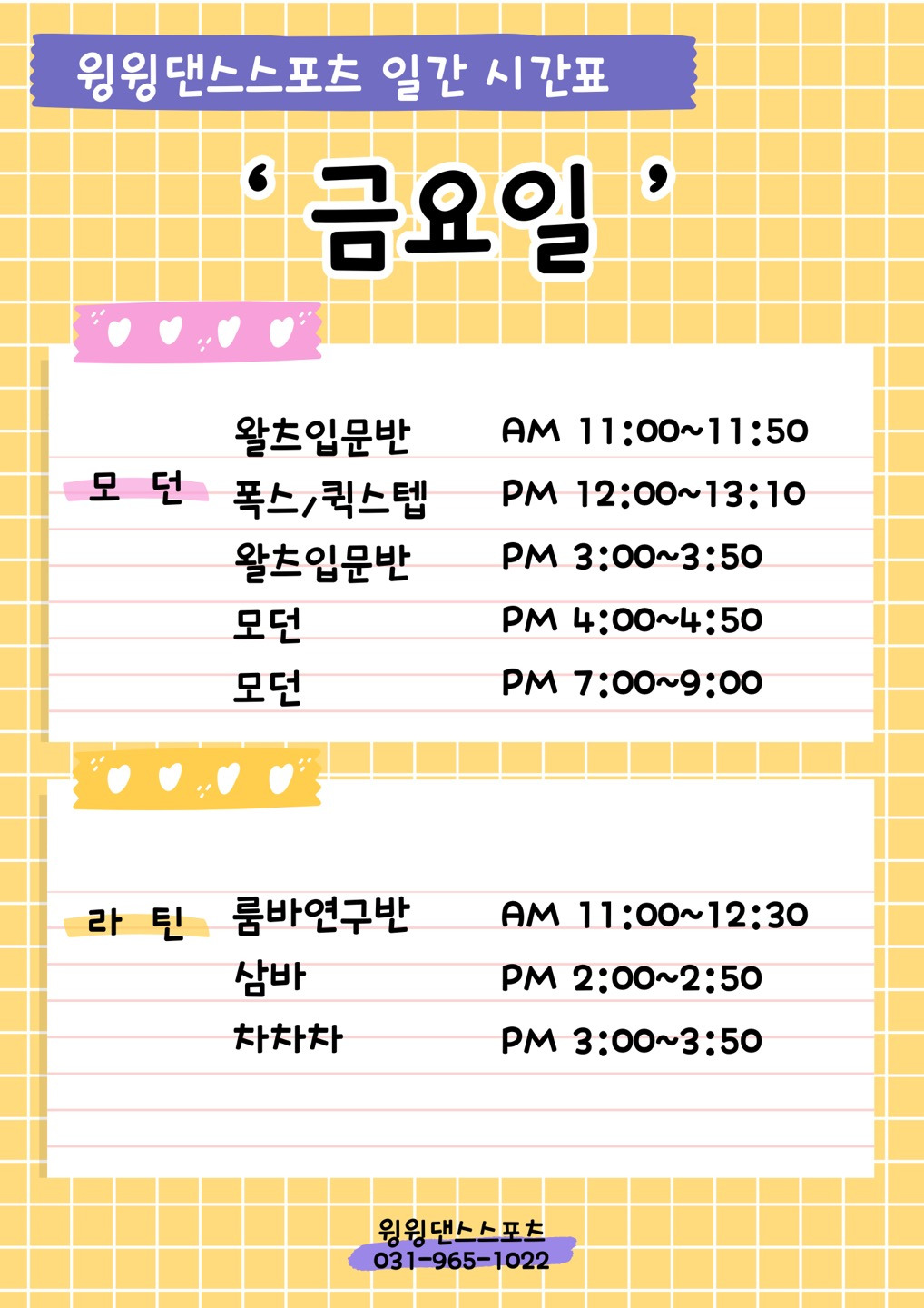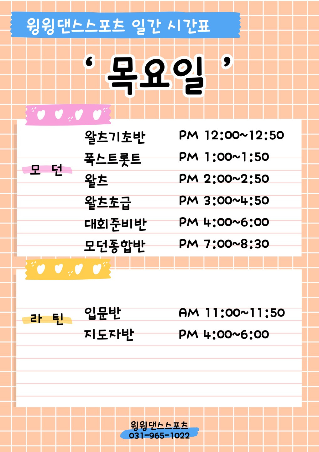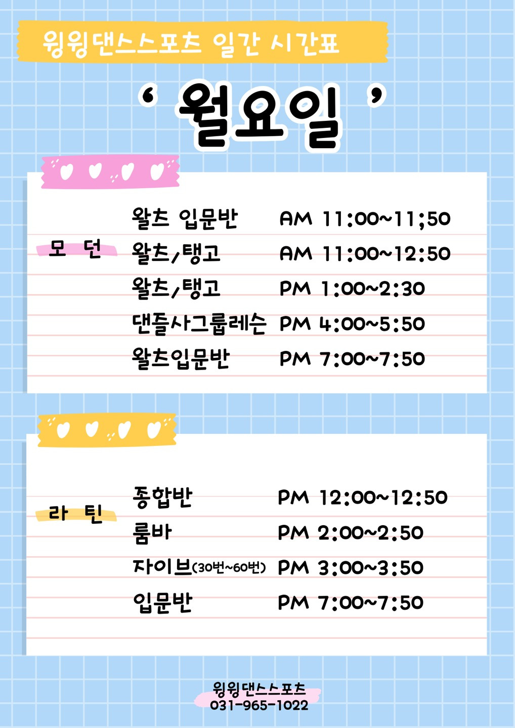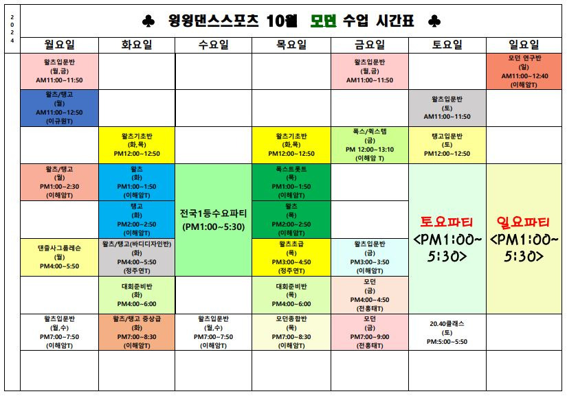 ⭐🌷윙윙댄스스포츠 10월 모던&라틴 단체반 시간표 공지🌷⭐