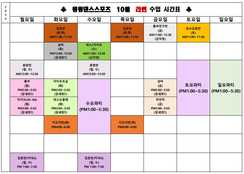 10월 모던&라틴 시간표입니다.