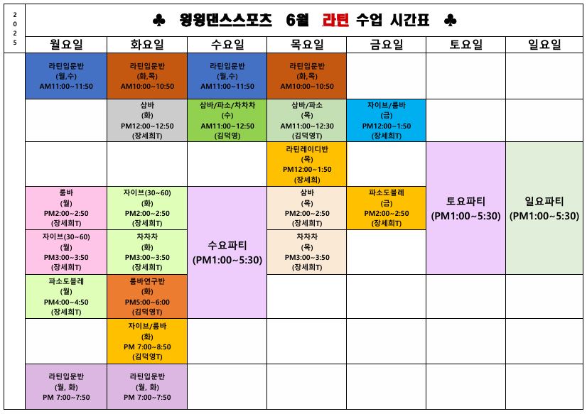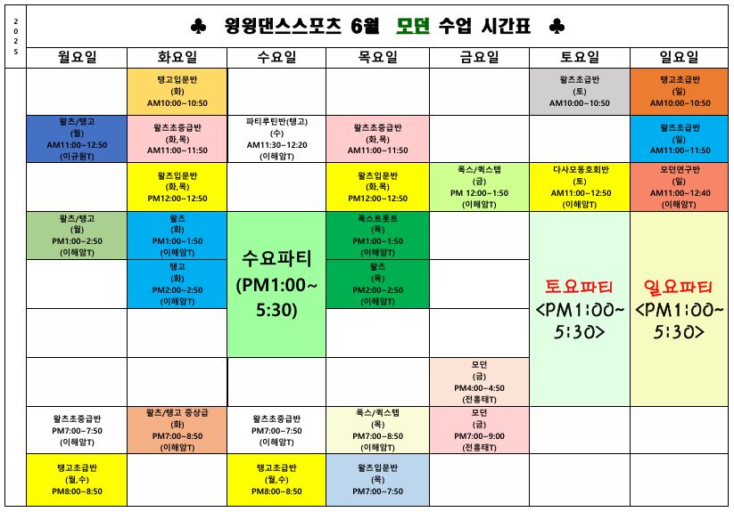 ⭐🌷윙윙댄스스포츠 6월 모던&라틴 단체반 시간표 공지🌷⭐