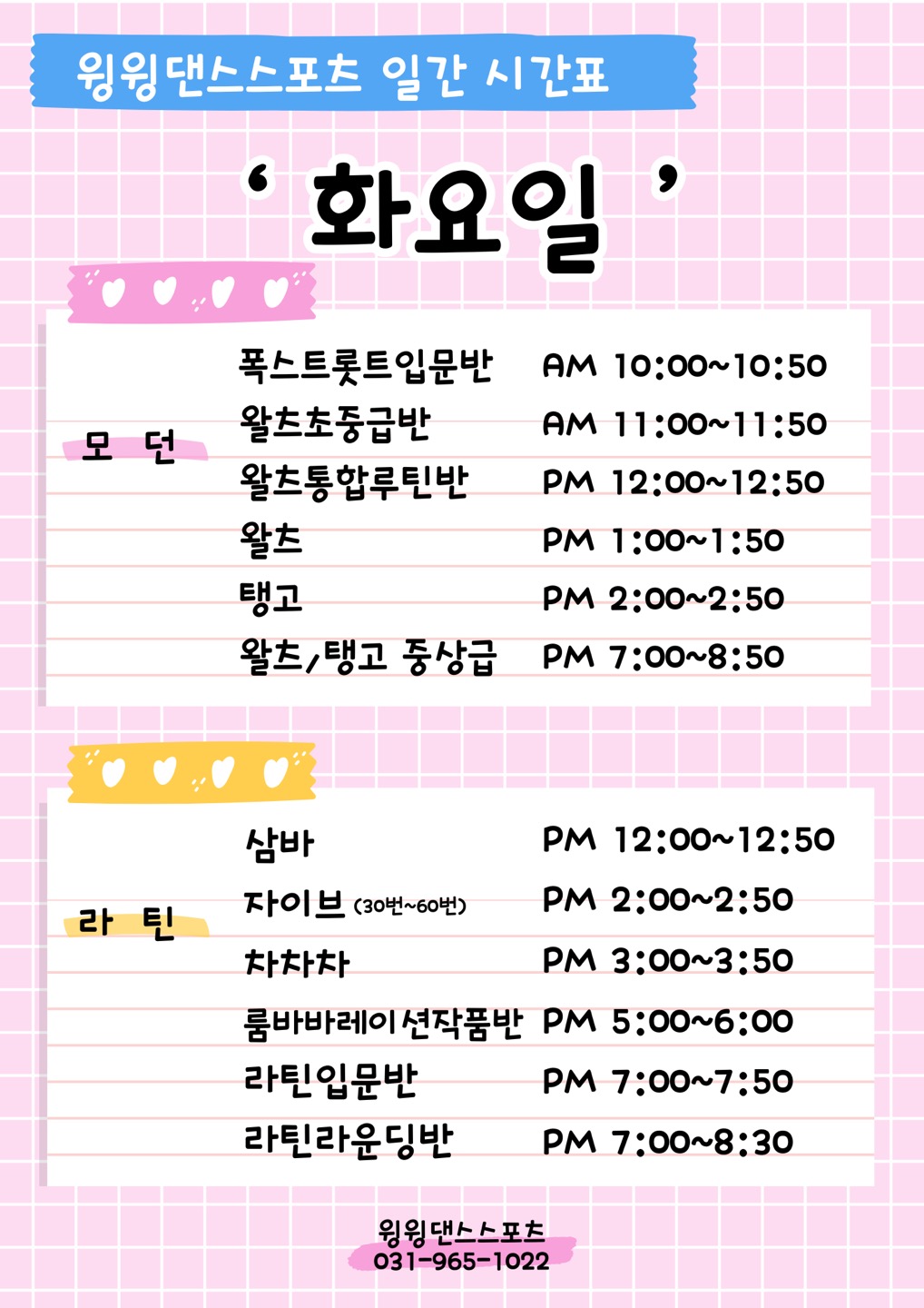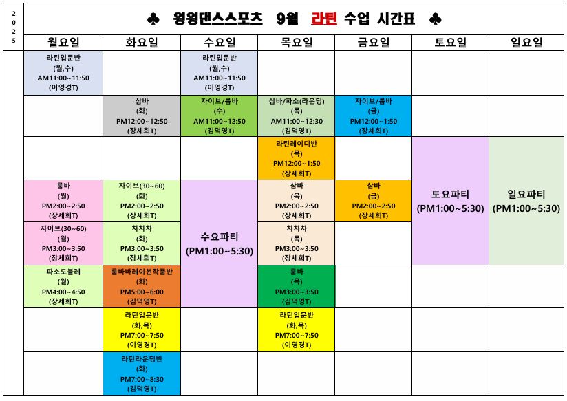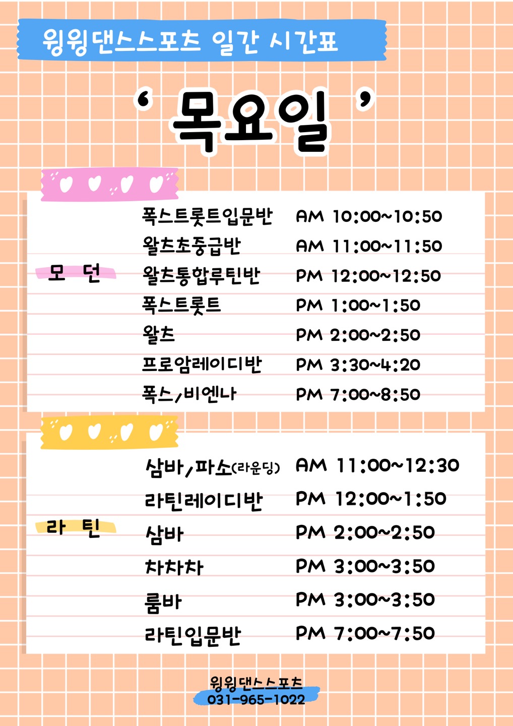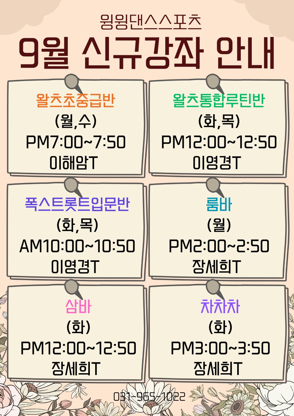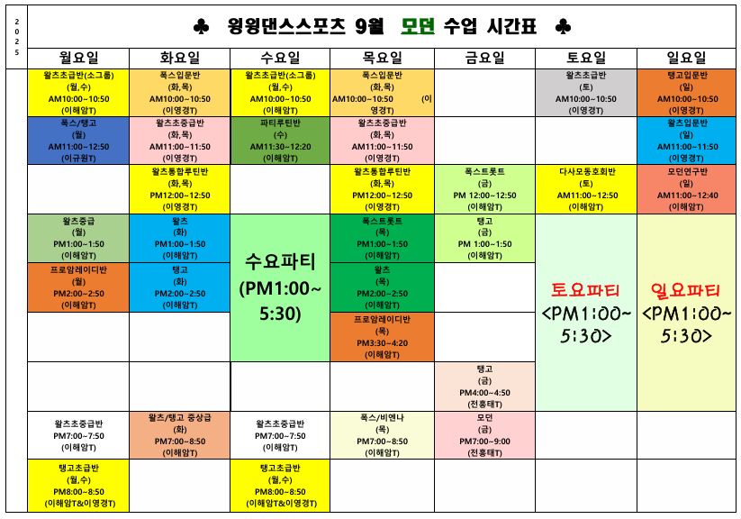 ⭐🌷윙윙댄스스포츠 9월 모던&라틴 단체반 시간표 공지🌷⭐