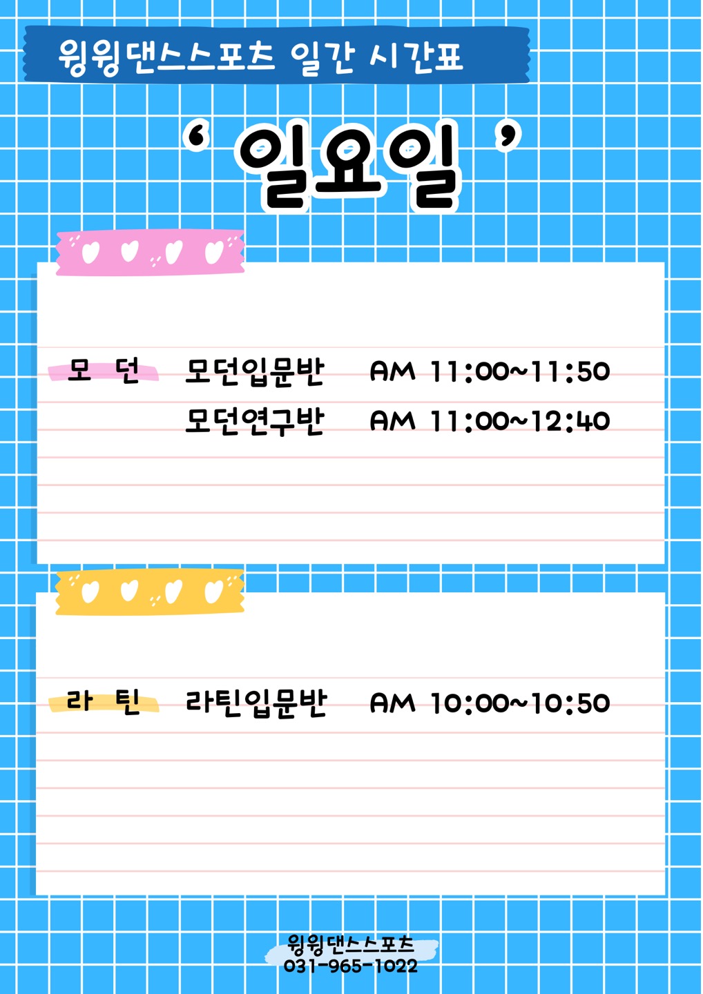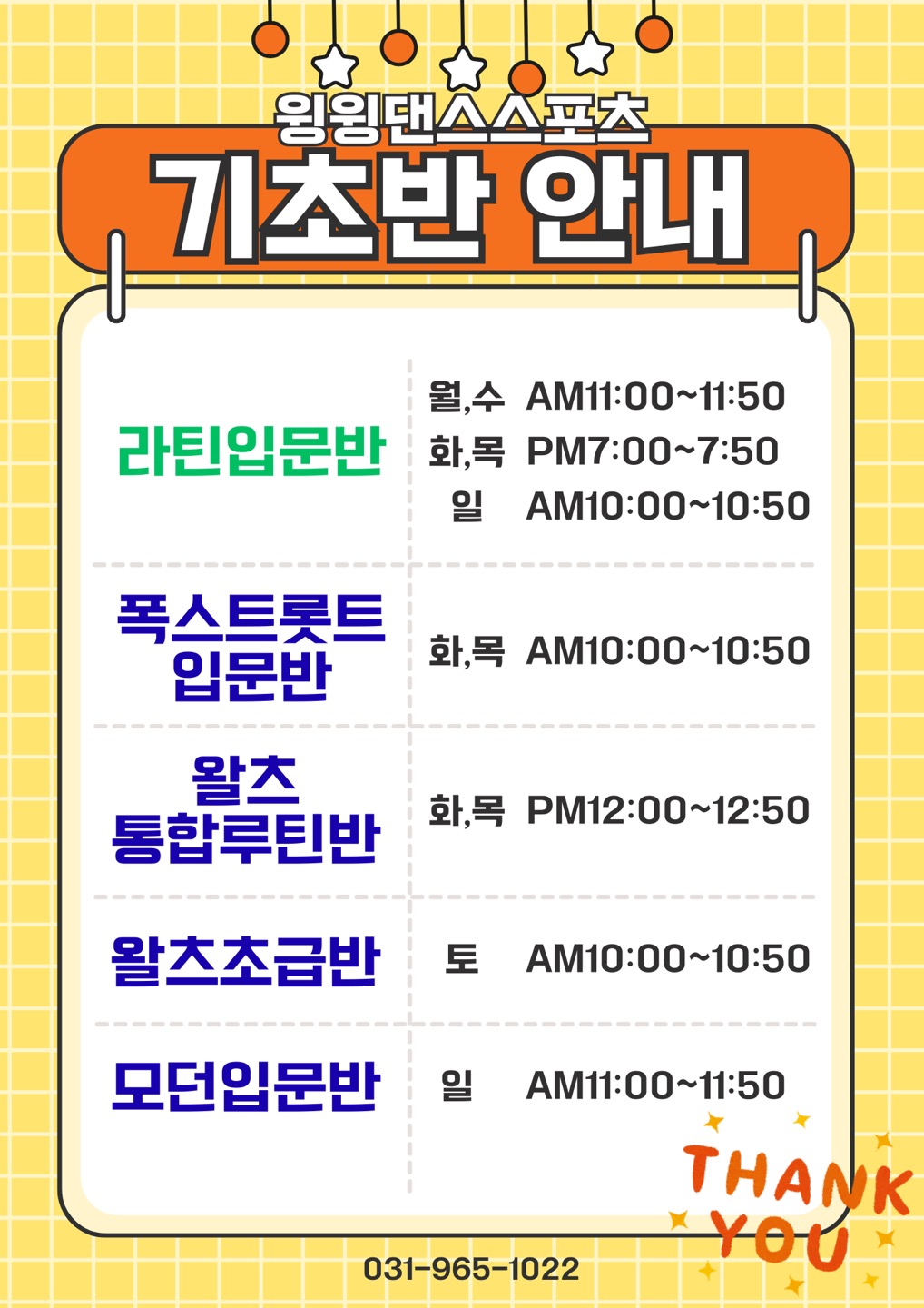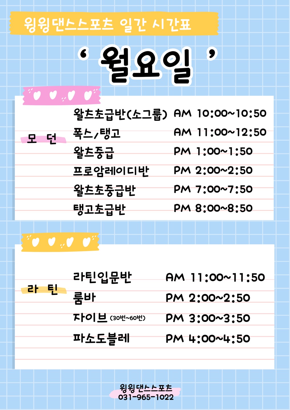 ⭐🌷윙윙댄스스포츠 9월 모던&라틴 단체반 시간표 공지🌷⭐