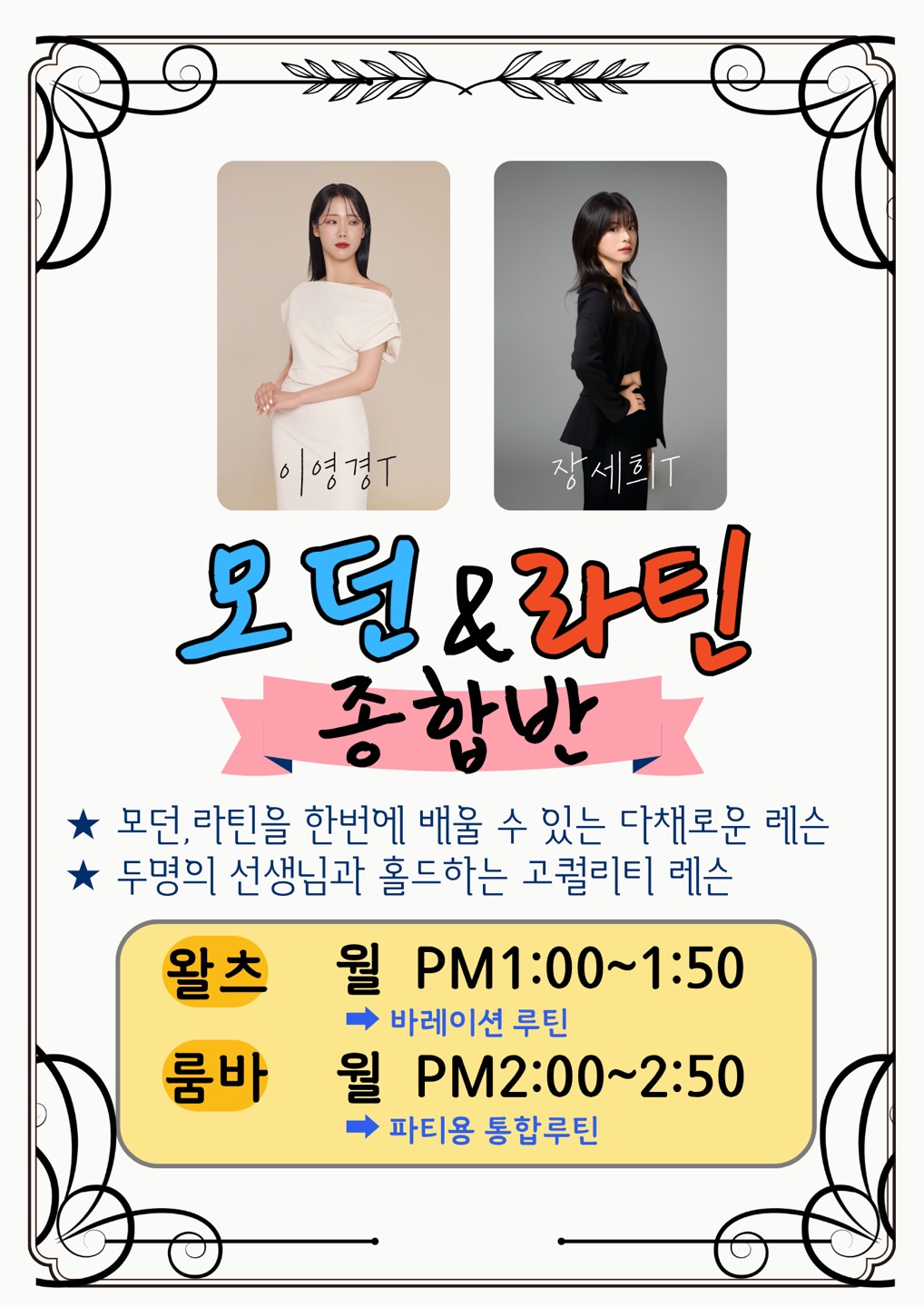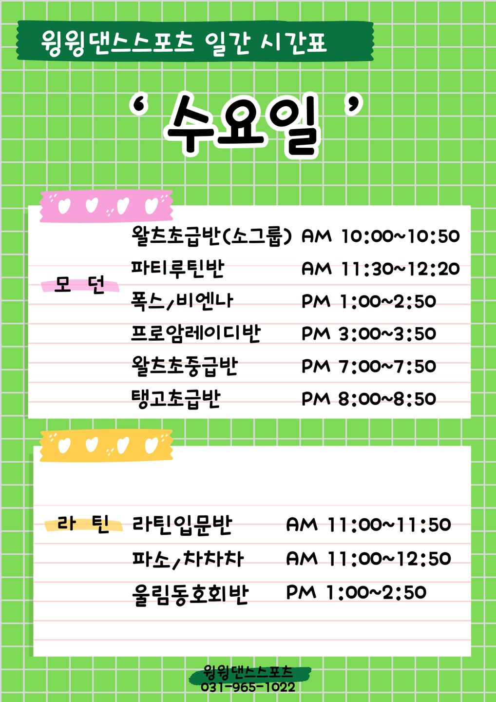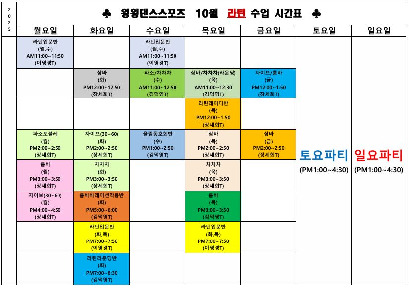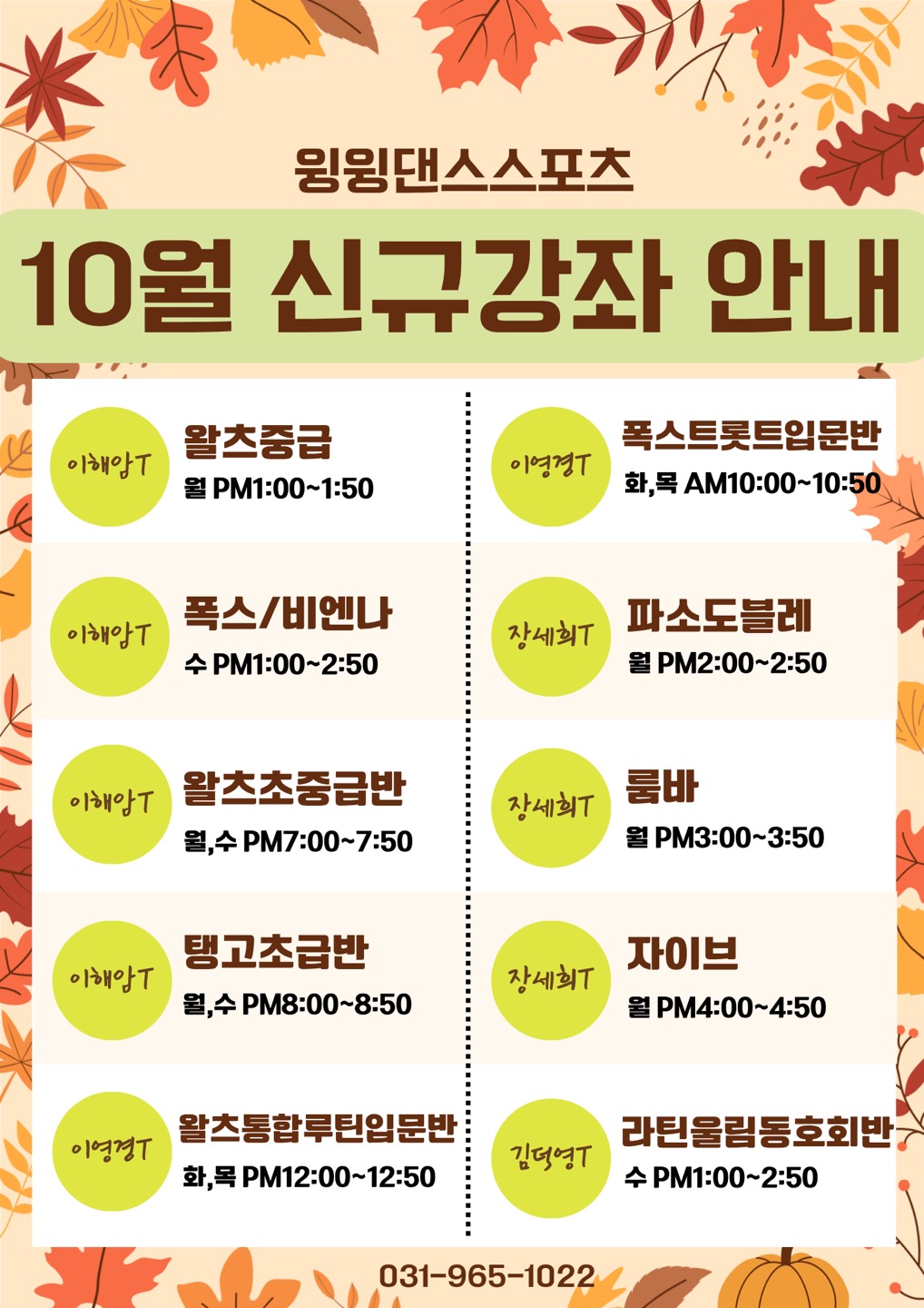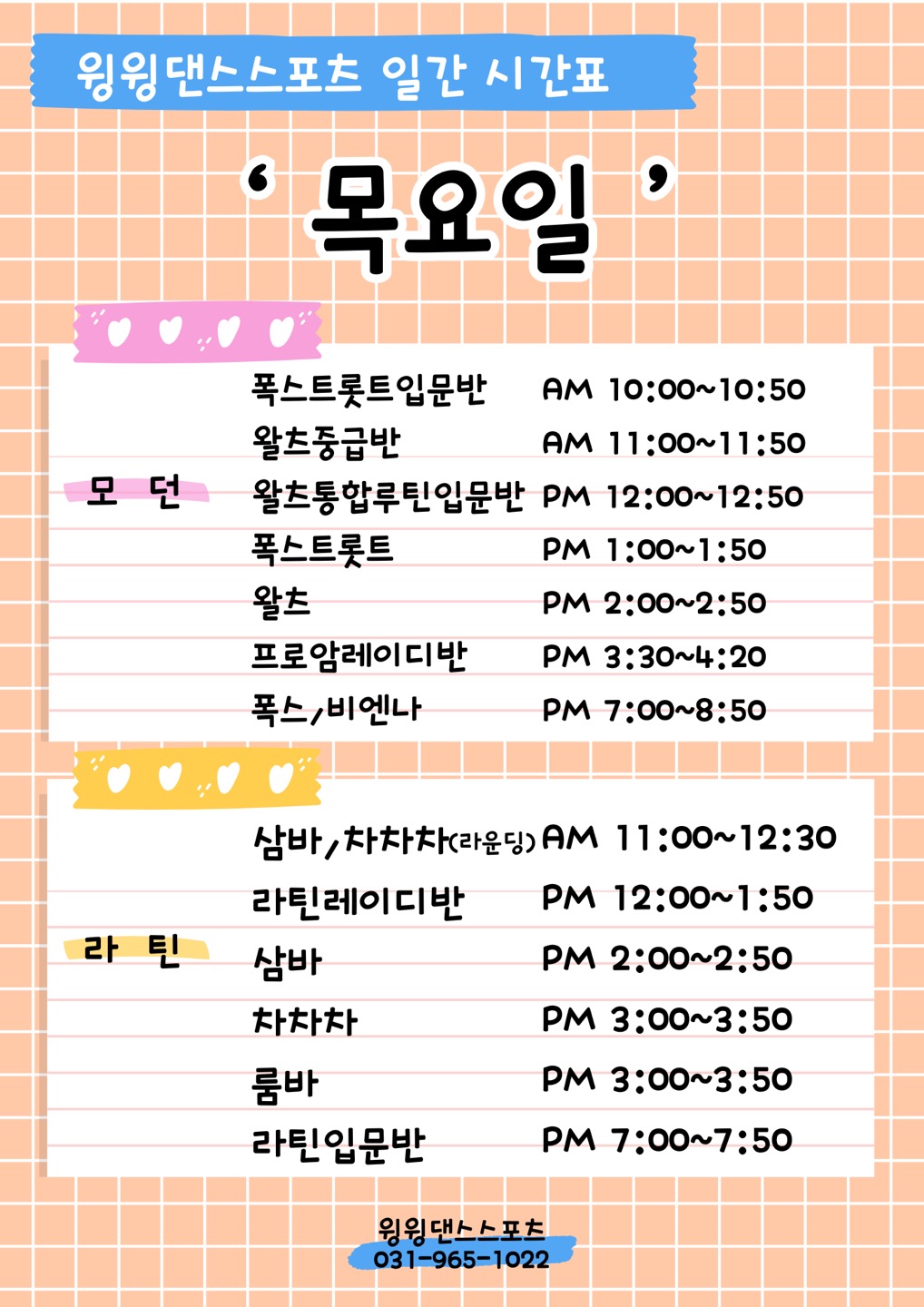 ⭐🌷윙윙댄스스포츠 10월 모던&라틴 단체반 시간표 공지🌷⭐
