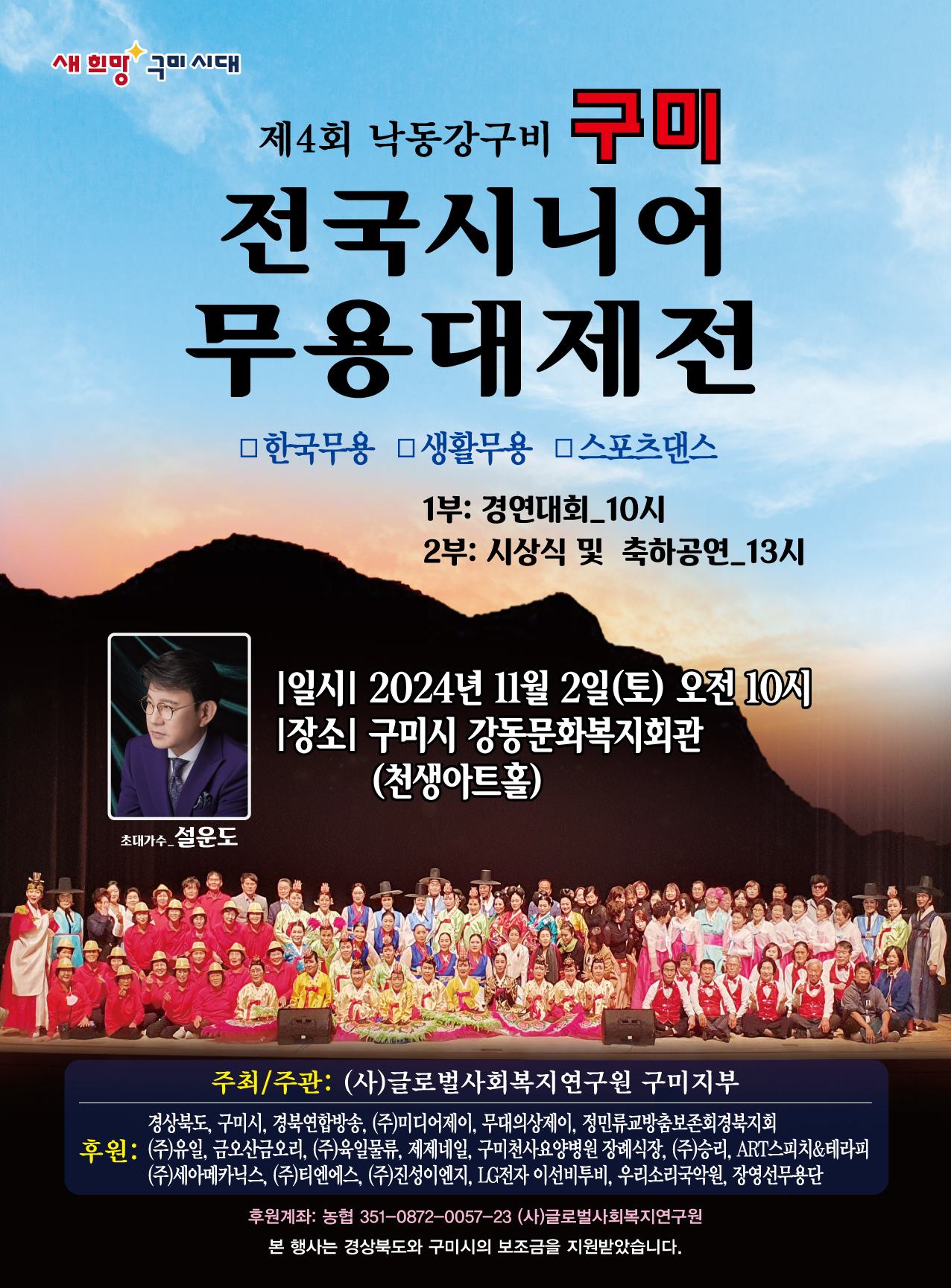 설운도 가수님 초청공연이 11월 2일 구미 강동문화복지회관에서 있습니다