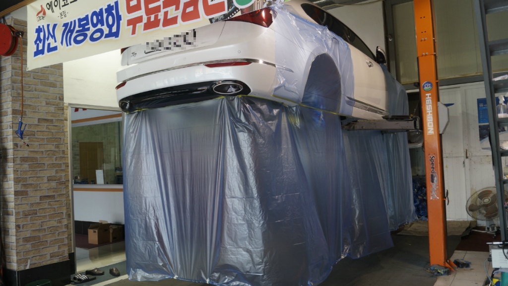 하체코팅 전 전체 풀카바링 작업 입니다 . 약품이 차체에 티지않도록