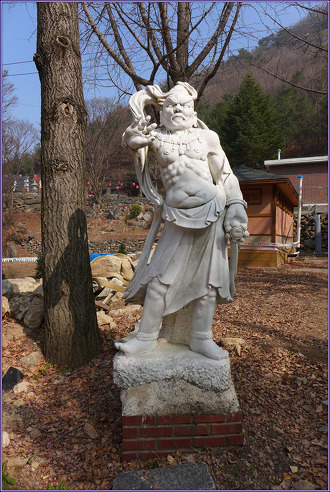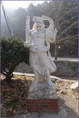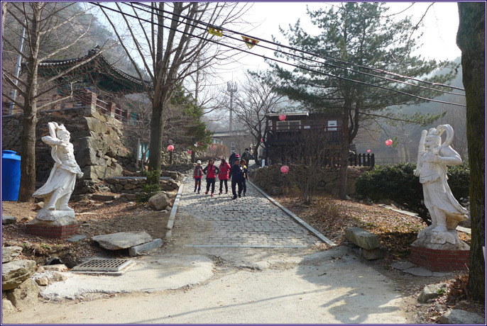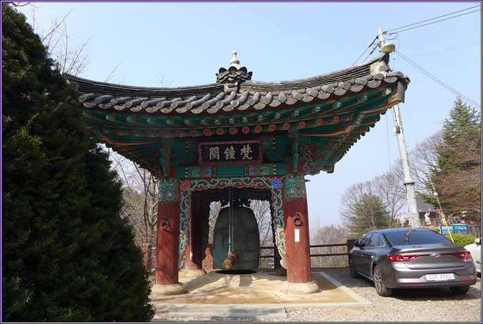 2. 파주 감악산 범륜사(紺岳山 梵輪寺)를 찾아서 ① - 범륜사 입구에서 대웅전, 백옥석 관음상까지 - 3월 25일 10시 경 출렁다리를 떠나 범륜사로 향했습니다. 천천히 걸어 10시 20분 쯤 범륜사에 도착했습니다. 이 절은 일주문은 없고 금강역사 두 분이 우리를 맞았습니다. 예를 올리고 경내로 들어갔습니다. 그런데 지금까지 범륜사(梵輪寺)라는 사명은 처음 보는 것 같습니다. 발음상 자칫 법륜사(法輪寺)로 오인 할 수 있을 것 같습니다. 아니나 다를까 인터넷을 검색해 보면 법륜사라 오기한 것을 많이 볼 수 있습니다.