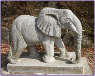 한 쌍의 코끼리 모습 불교에서 코끼리는 각별한 동물입니다. 불교를 상징하는 동물 중에 코끼리와 사자가 있는데 이 둘은 각기 행(行)과 지(智)를 상징합니다.