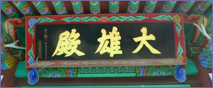 대웅전(大雄殿) 편액 - 금봉(錦峰) 스님 글씨 - 감악산 사문 금봉 향을 사르고 삼가 씀(紺岳山 沙門 錦峰 焚香謹書) 이란 낙관이 있습니다.