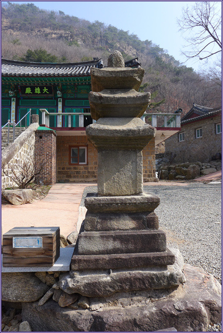 대웅전 앞의 다보탑(多寶塔)  탑 앞에 세워진 다보탑 안내석