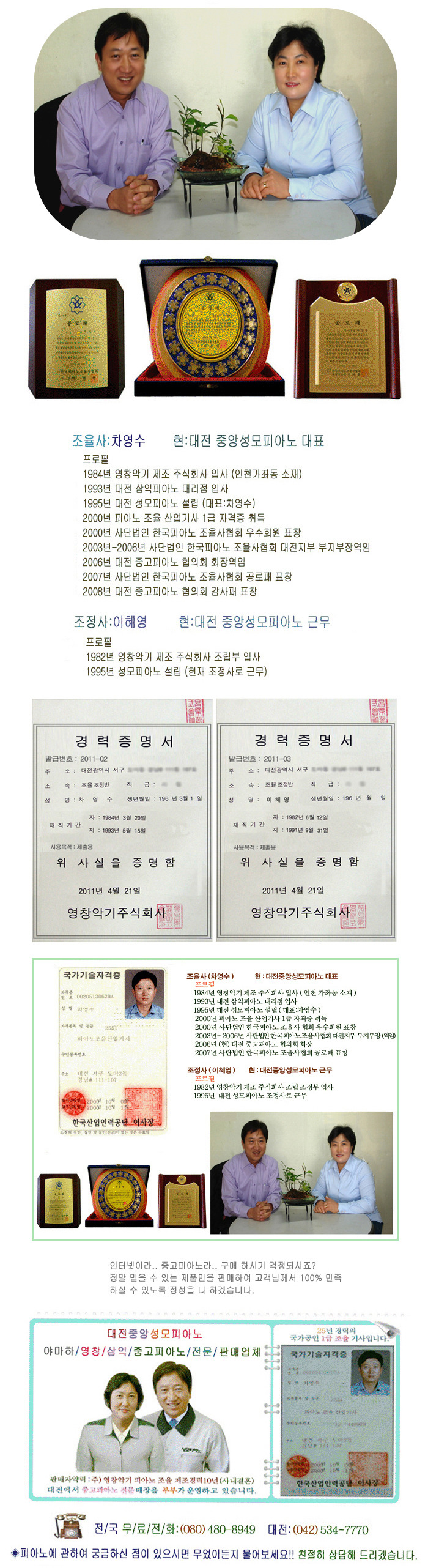 영창악기 공장에서 직접 제조 조율하면서 익힌 기술과 27년경력의 기술자부부가