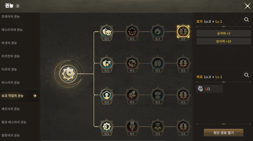 - 보조 직업의 권능은 70 레벨부터 진행이 가능합니다.
