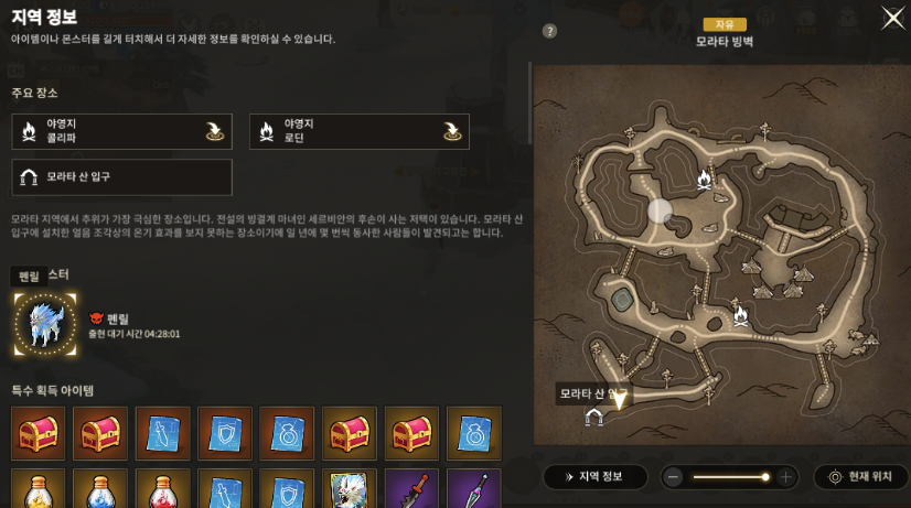 - 모라타 빙벽 지역에 신규 필드보스 '펜릴'이 추가됩니다.