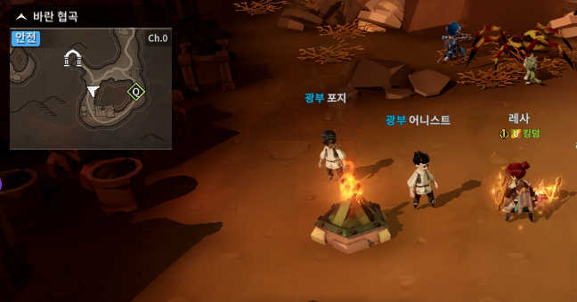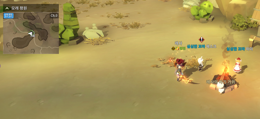 1. 모래 평원 중앙 모닥불 바로 왼쪽 NPC에스크와 대화 진행