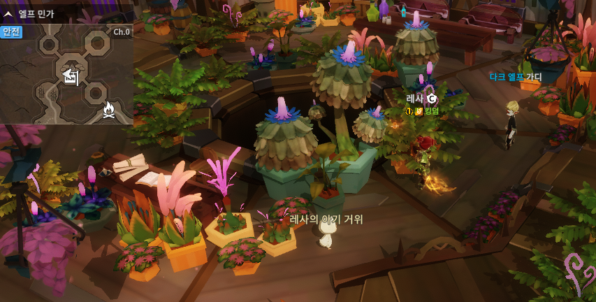 1. 그늘진 숲 마을 중앙 엘프민가 NPC가디와 대화