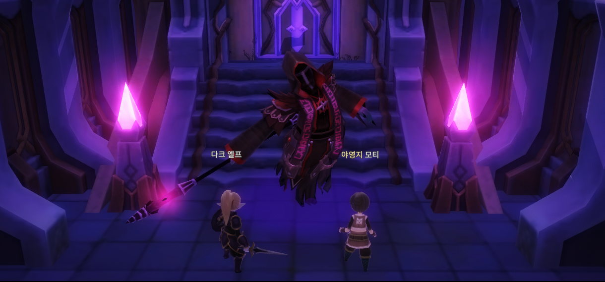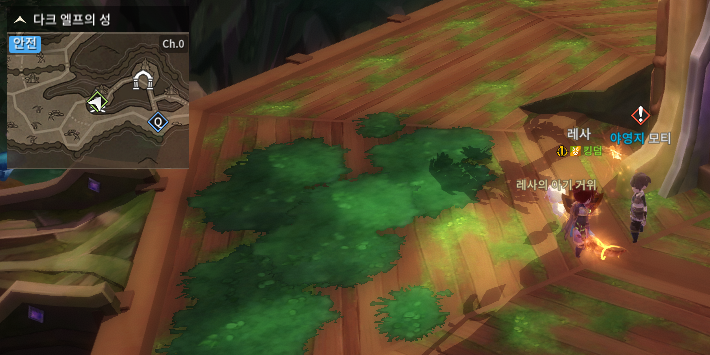 1. 다크 엘프의 성 중앙 모닥불 옆 NPC 모티와 대화 진행