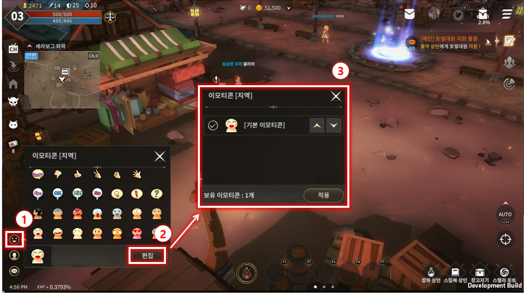 | 3 | 편집 리스트 | 보유한 이모티콘 리스트의 순서를 재정렬할 수 있습니다. |