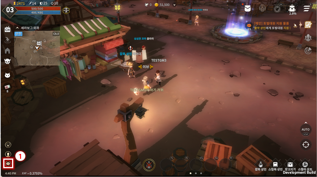 | 4 | 파티 | 파티 타입의 채팅을 보여줍니다. 채팅 입력 시 캐릭터와 동일한 파티인 유저들이 볼 수 있습니다. |