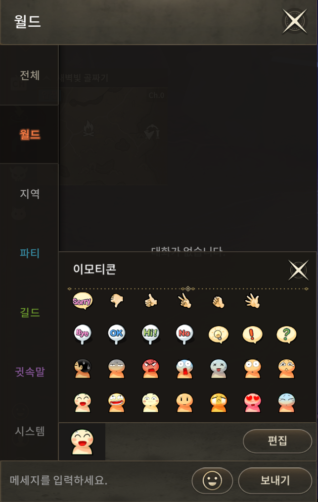 | 채팅에서 이모티콘을 입력할 수 있습니다. (지역,파티,길드,귓속말 동일) | ||